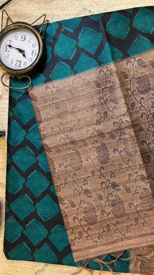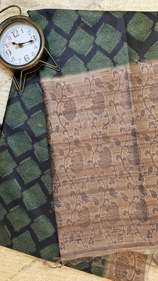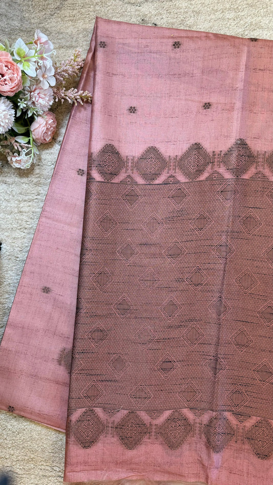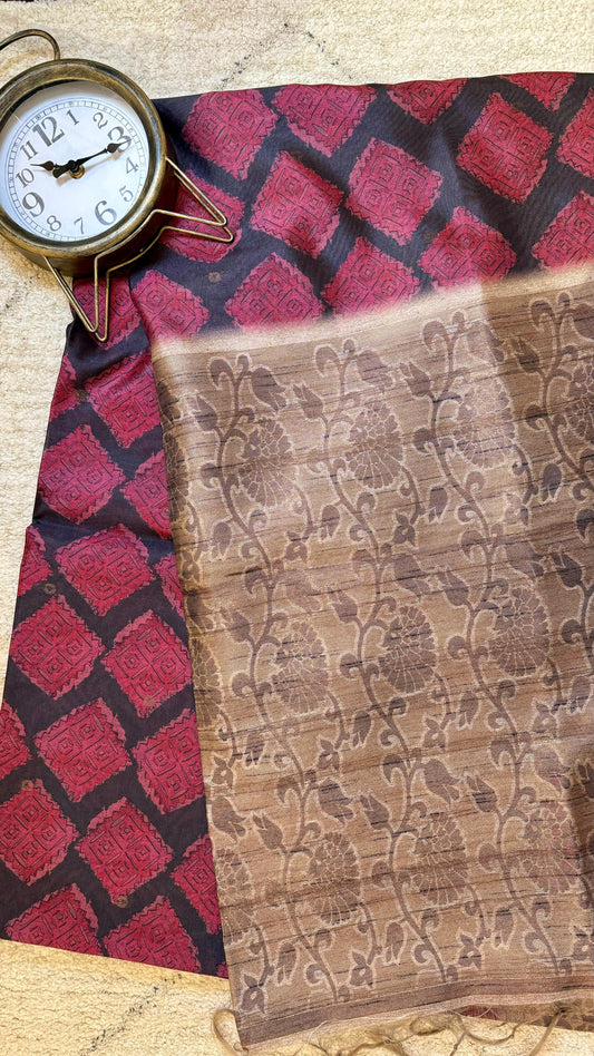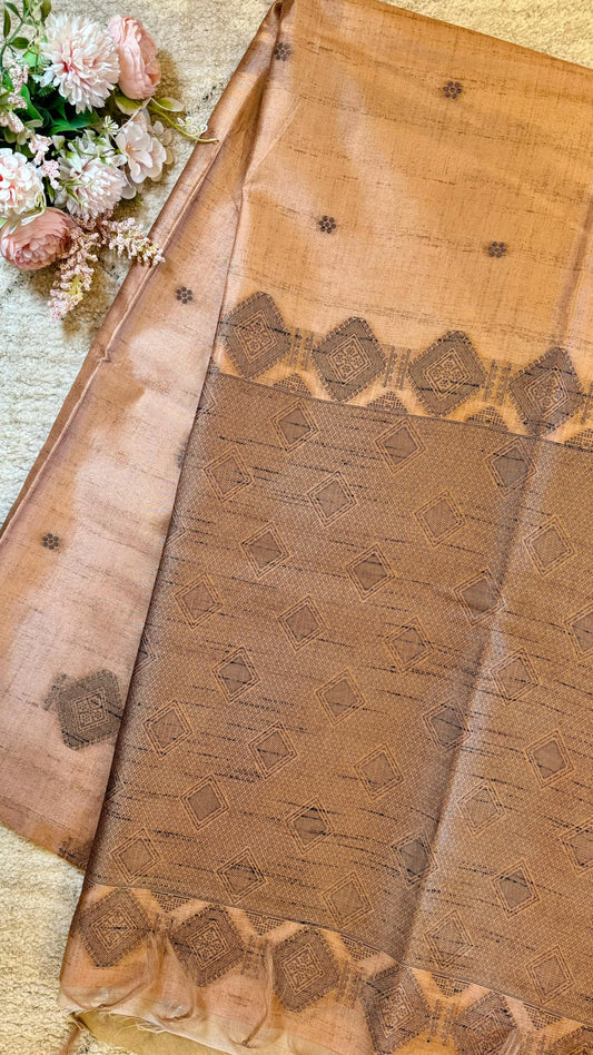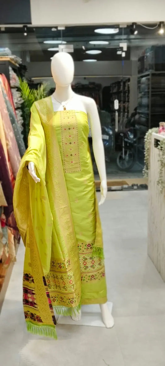 Elegant Tussar Silk Unstitched Suit Set with Intricate Detailing