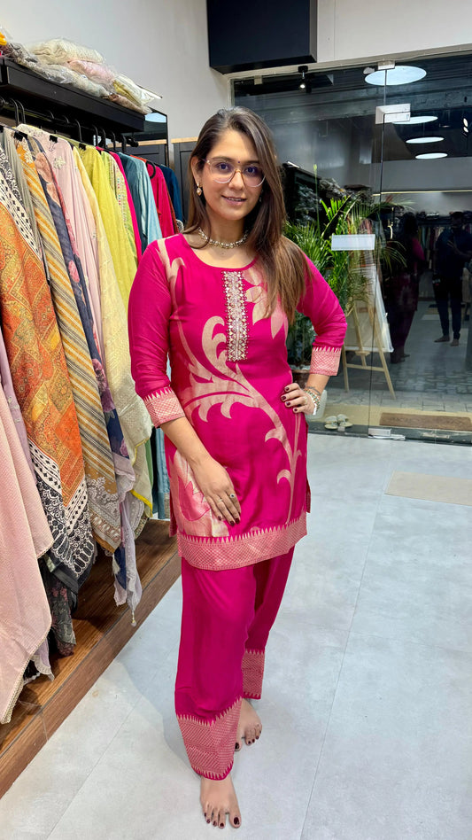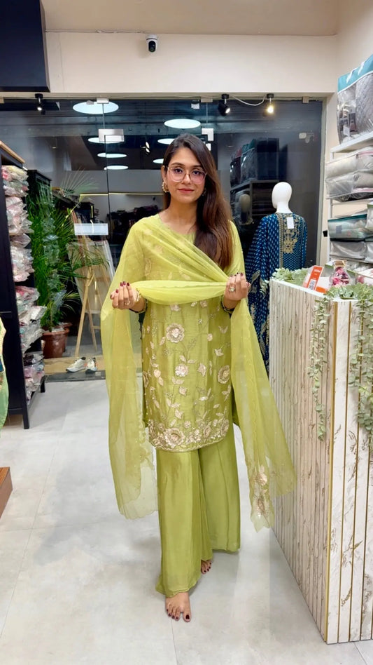 3D Appliqué Handwork Pakistani Suit Set with Plazo Pants