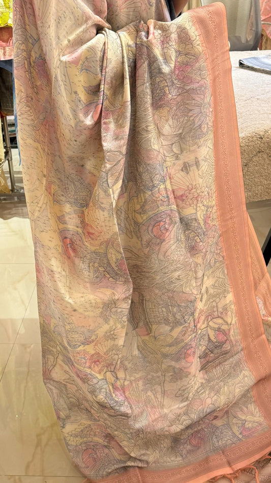 Elegant Russian Silk Kalamkari Print Readymade Suit Set