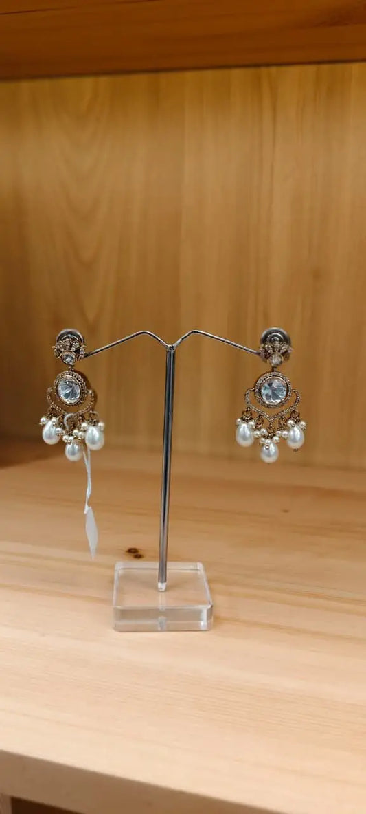 Kundan AD stones small chandbaali earrings with pearl detailing