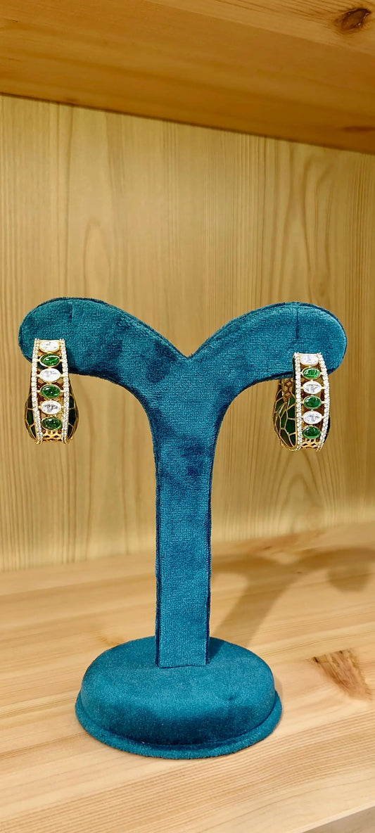 Enamel Meenakari Hoop Earrings with Uncut Kundan & Color Stones