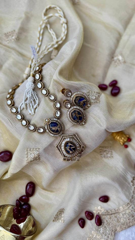 Royal Blue Kundan Necklace Set with Earrings Wedding & Festive Jewelry