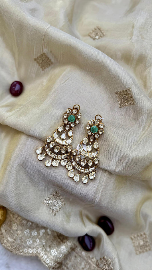 Premium Polki Kundan Chandbali Earrings with Green Stone Accent