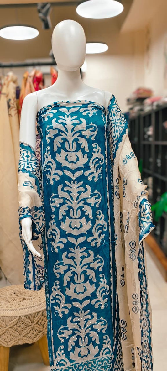 Maheshwari Dabu Print Kantha Embroidery Dress Material
